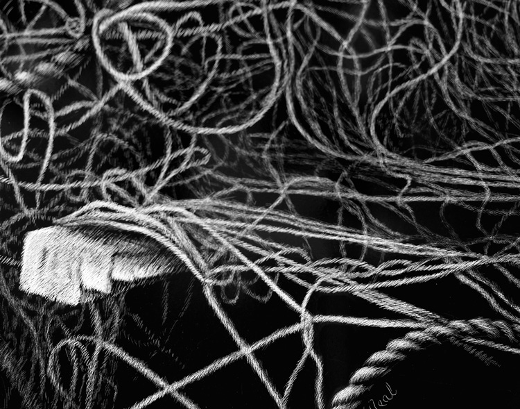 ...and a closeup of the netting scratchboard work, mostly using a #11 scalpel blade and some blending with tattoo neeles