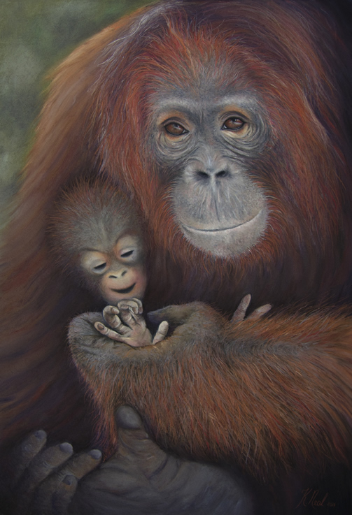 It's long been on my wishlist to paint the amazingly gentle & beautiful red-haired apes, the endangered Orangutan.