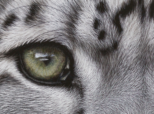 This particular snow leopard is the beautiful Mimi who resides in Tama Zoo, Tokyo, and photographed by Steve Tracy (thanks once again Steve for allowing me to work from your beautiful photographs).